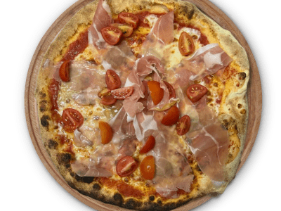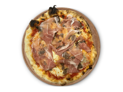 Pomodoro, Mozzarella, Mascarpone, Funghi Porcini, Prosciutto Crudo, Olio Piccante