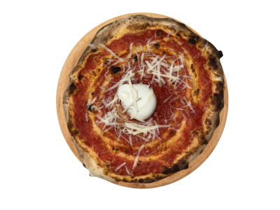 Salsa al pomodoro fiammante Mozzarella fior di latte Burrata da 180 grammi Grana padano a scaglie Olio extra vergine di oliva